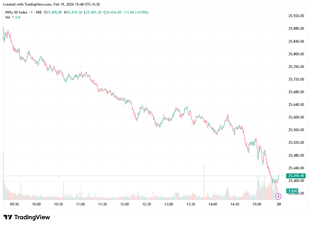 దేశీయ స్టాక్ మార్కెట్లు గురువారం భారీ నష్టాలతో ముగిశాయి. భారత బెంచ్ మార్క్ సూచీలు గురువారం భారీ అమ్మకపు ఒత్తిడిని చవిచూశాయి. మార్కెట్ ముగింపు సమయానికి బీఎస్ఈ సెన్సెక్స్ 1236.11 పాయింట్లు లేదా 1.48 శాతం క్షీణించి 82,498.14 వద్ద, ఎన్ఎస్ఈ నిఫ్టీ 365.00 పాయింట్లు లేదా 1.41 శాతం నష్టపోయి 25,454.35 వద్ద ముగిసింది. ఈ ఏడాది ఫిబ్రవరి 1 నుండి బెంచ్ మార్క్ లు అత్యంత చెత్త పతనాన్ని నమోదు చేశాయి.