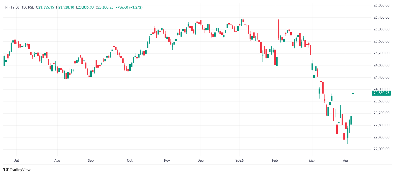 దేశీయ స్టాక్ మార్కెట్ సూచీలు బుధవారం భారీ లాభాల్లో కదలాడుతున్నాయి. ఈరోజు ఉదయం 9:29 సమయానికి నిఫ్టీ(Nifty) 761 పాయింట్లు పెరిగి 23,890 వద్దకు చేరింది. సెన్సెక్స్(Sensex) 2602 పాయింట్లు ఎగబాకి 77,198 వద్ద ట్రేడవుతోంది.