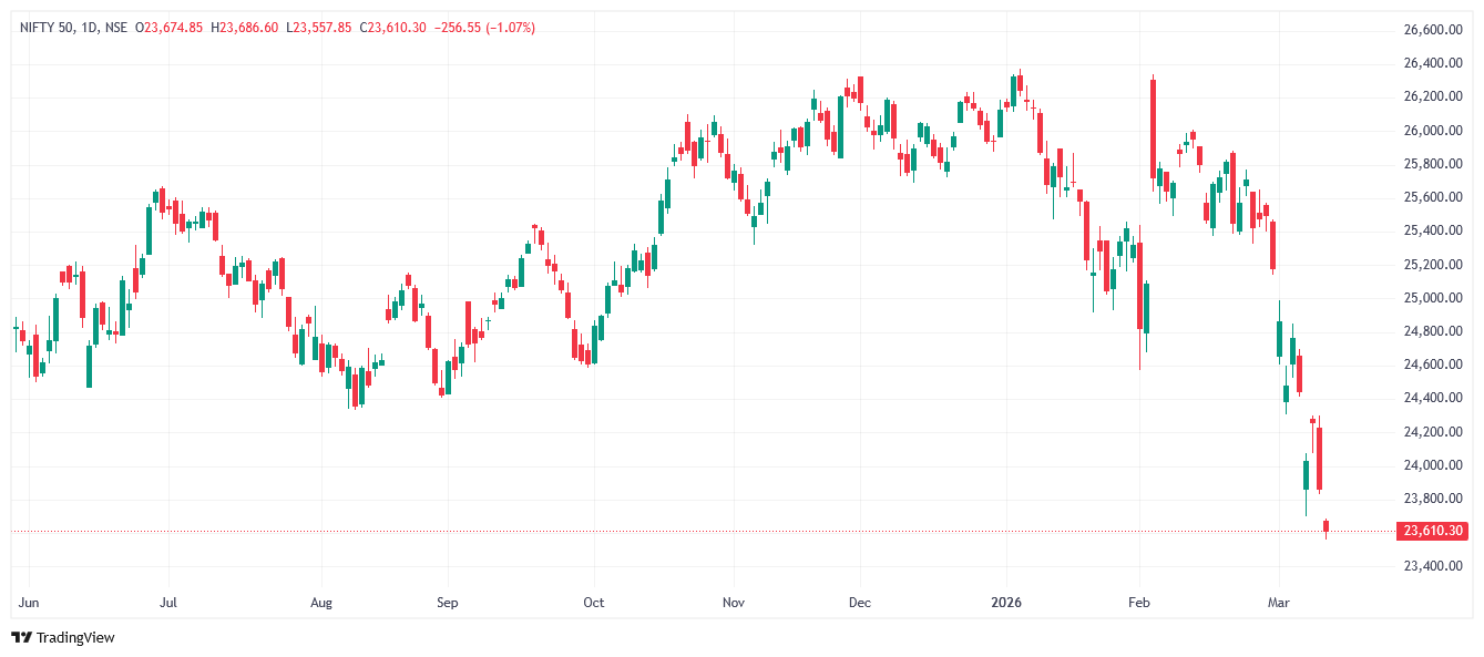 దేశీయ స్టాక్ మార్కెట్ సూచీలు గురువారం భారీ నష్టాల్లో కదలాడుతున్నాయి. ఈరోజు ఉదయం 9:33 సమయానికి నిఫ్టీ(Nifty) 255 పాయింట్లు తగ్గి 23,606 వద్దకు చేరింది. సెన్సెక్స్(Sensex) 809 పాయింట్లు దిగజారి 76,045 వద్ద ట్రేడవుతోంది.
