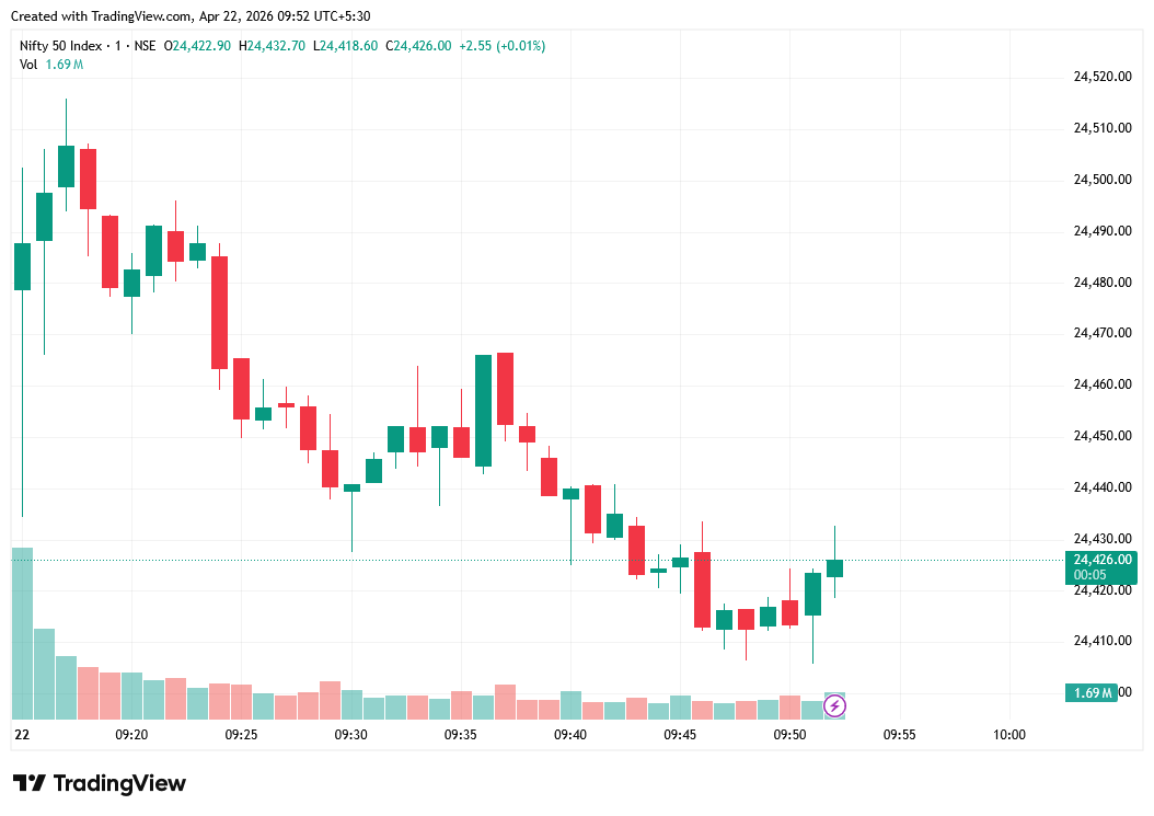 ఈరోజు ఉదయం 9:46 సమయానికి నిఫ్టీ(Nifty) 150 పాయింట్లు పడిపోయి 24,426 వద్ద, సెన్సెక్స్(Sensex) 591 పాయింట్లు క్షీణించి 78,681 వద్ద ట్రేడవుతున్నాయి.