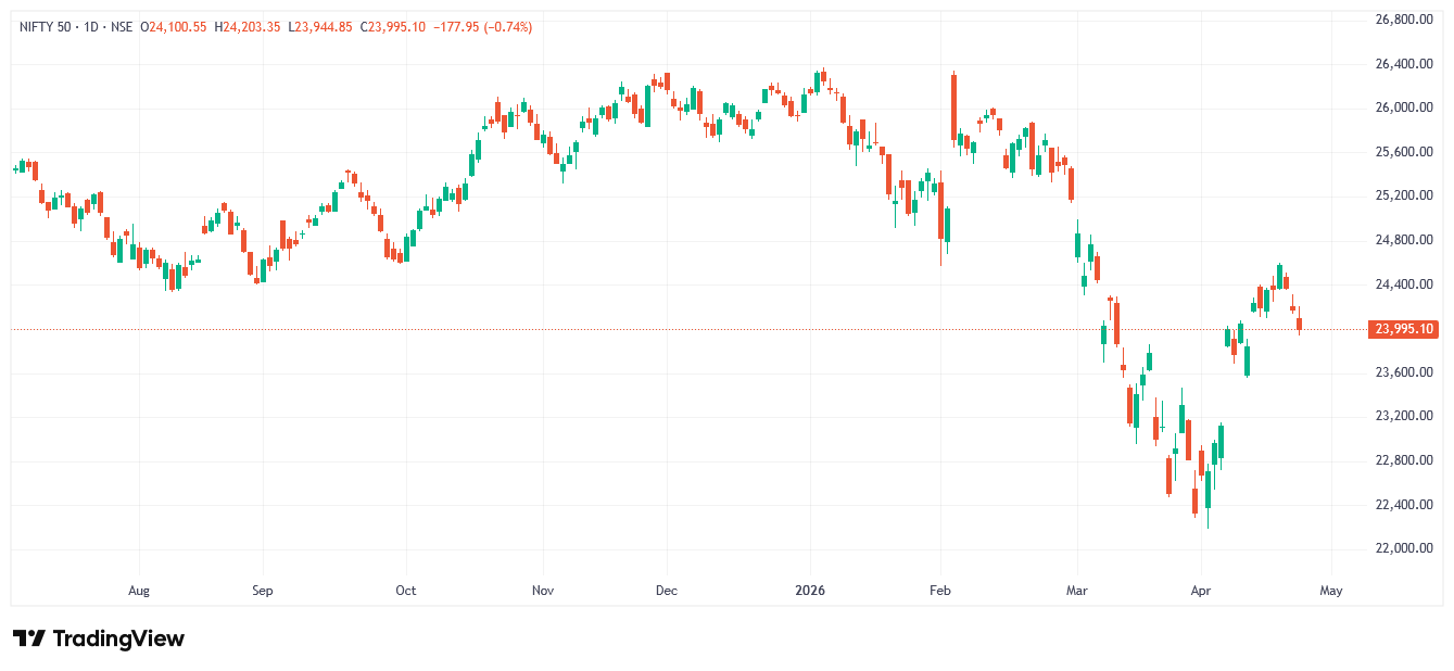 దేశీయ స్టాక్ మార్కెట్ సూచీలు శుక్రవారం నష్టాల్లో కదలాడుతున్నాయి. ఈరోజు ఉదయం 10:05 సమయానికి నిఫ్టీ(Nifty) 176 పాయింట్లు తగ్గి 23,994 వద్దకు చేరింది. సెన్సెక్స్(Sensex) 671 పాయింట్లు నష్టపోయి 76,984 వద్ద ట్రేడవుతోంది.