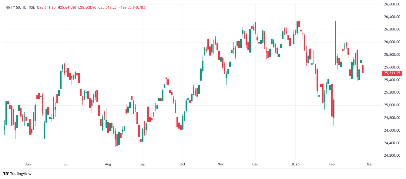 దేశీయ స్టాక్ మార్కెట్ సూచీలు మంగళవారం నష్టాల్లో కదలాడుతున్నాయి. ఈరోజు ఉదయం 9:36 సమయానికి నిఫ్టీ(Nifty) 198 పాయింట్లు తగ్గి 25,512 వద్దకు చేరింది. సెన్సెక్స్(Sensex) 706 పాయింట్లు దిగజారి 82,587 వద్ద ట్రేడవుతోంది.