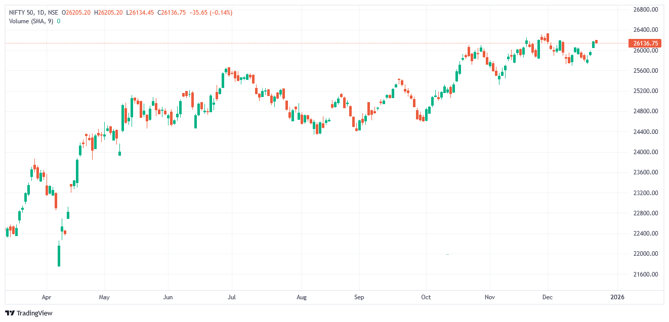 దేశీయ స్టాక్ మార్కెట్ సూచీలు గడిచిన సెషన్తో పోలిస్తే మంగళవారం ఫ్లాట్గా పయనిస్తున్నాయి. ఈరోజు ఉదయం 9:29 సమయానికి నిఫ్టీ(Nifty) 27 పాయింట్లు నష్టంతో 26,144 వద్దకు చేరింది. సెన్సెక్స్(Sensex) 128 పాయింట్లు దిగజారి 85,434 వద్ద ట్రేడవుతోంది.