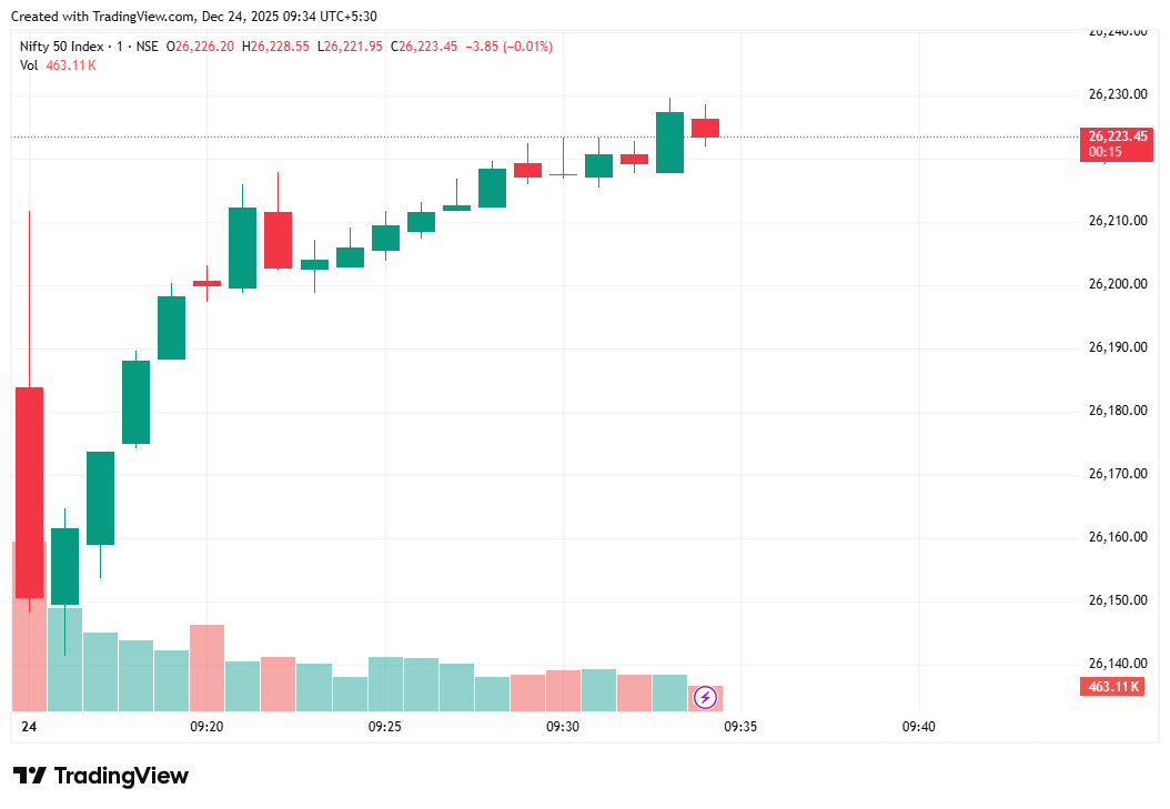 దేశీయ స్టాక్ మార్కెట్ సూచీలు బుధవారం ఫ్లాట్గా ప్రారంభమయ్యాయి. గడిచిన సెషన్తో పోలిస్తే స్వల్ప లాభాలలో పయనిస్తున్నాయి. ఈరోజు ఉదయం 9:25 సమయానికి నిఫ్టీ(Nifty) 31 పాయింట్లు లాభంతో 26,208 వద్దకు చేరింది. సెన్సెక్స్(Sensex) 63 పాయింట్లు పెరిగి 85,588 వద్ద ట్రేడవుతోంది.