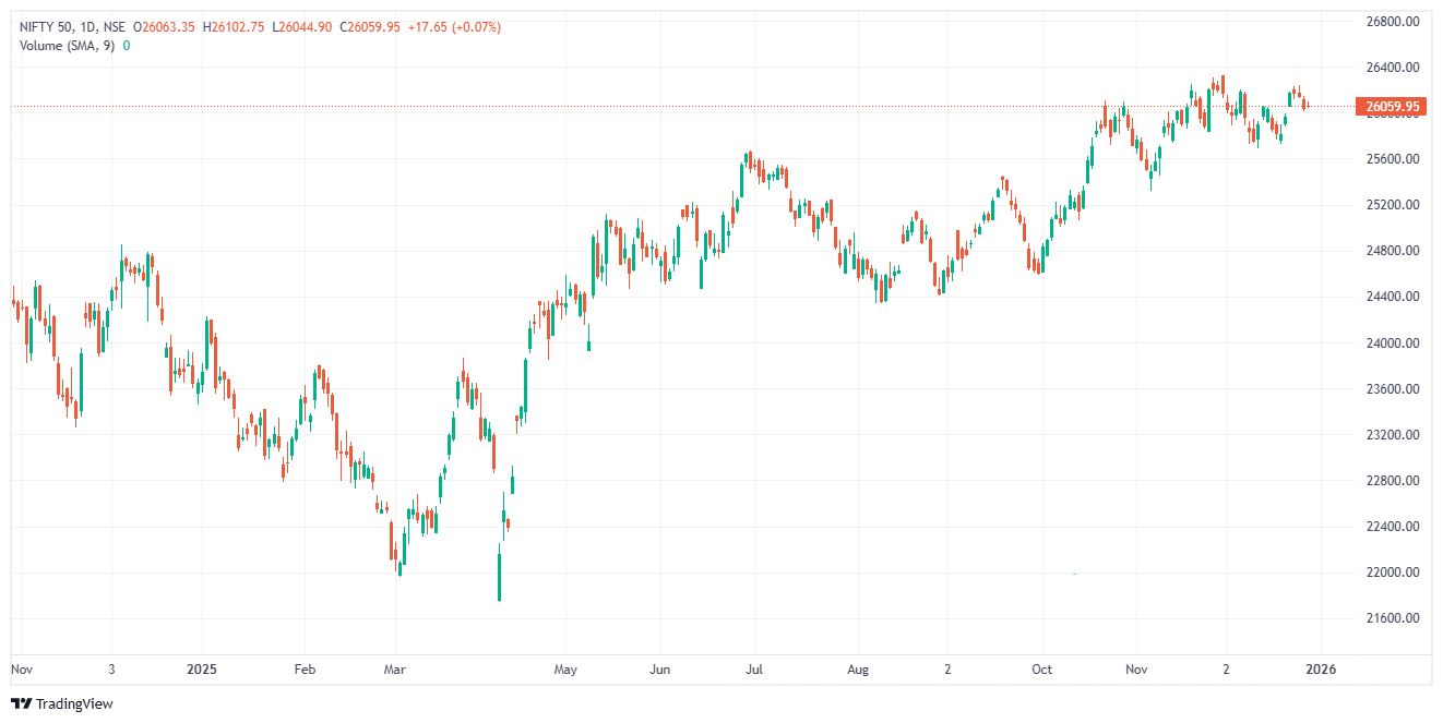 దేశీయ స్టాక్ మార్కెట్ సూచీలు సోమవారం ఫ్లాట్గా కదలాడుతున్నాయి. ఈరోజు ఉదయం 9:23 సమయానికి నిఫ్టీ(Nifty) 12 పాయింట్లు లాభంతో 26,056 వద్దకు చేరింది. సెన్సెక్స్(Sensex) 17 పాయింట్లు పెరిగి 85,061 వద్ద ట్రేడవుతోంది.