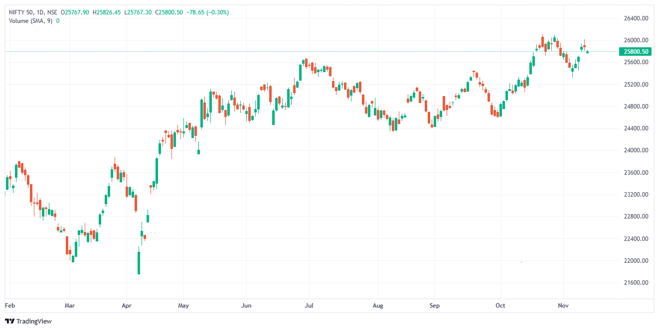 దేశీయ స్టాక్ మార్కెట్ సూచీలు గడిచిన సెషన్తో పోలిస్తే శుక్రవారం నష్టాల్లో కదలాడుతున్నాయి. ఈరోజు ఉదయం 09:21 సమయానికి నిఫ్టీ(Nifty) 68 పాయింట్లు తగ్గి 25,812కు చేరింది. సెన్సెక్స్(Sensex) 247 పాయింట్లు నష్టపోయి 84,228 వద్ద ట్రేడవుతోంది. బిహార్ ఎన్నికల ఫలితాల నేపథ్యంలో ట్రేడర్లు అప్రమత్తంగా వ్యవహరిస్తున్నట్లు నిపుణులు అంచనా వేస్తున్నారు.