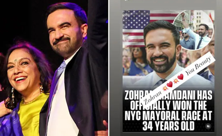 కుమారుడు జోహ్రాన్ మమ్దానీ విజయంపై మీరా నాయర్, బాలీవుడ్ దర్శకురాలు జోయా అక్తర్ ఇన్స్టా పోస్ట్ను షేర్ చేశారు. హార్ట్, బాణసంచా ఎమోజీలతో "జోహ్రాన్ యు బ్యూటీ" అనే శీర్షికతో ఆమె స్టోరీని రీ పోస్ట్ చేశారు.