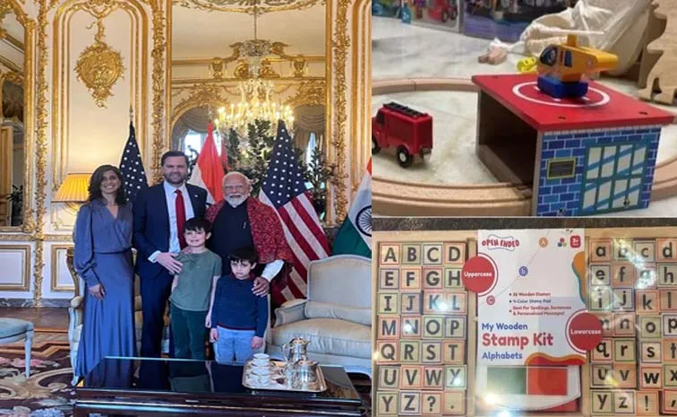 టాయ్ ట్రైన్, ఆల్ఫాబెట్ సెట్ని అమెరికా ఉపాధ్యాక్షుడు జేడీ వాన్స్ పిల్లలకు ఇచ్చారు మోదీ. ఇక ఫ్రెంచ్ అధ్యక్షుడు ఇమ్మాన్యుయేల్ మాక్రాన్కు డోక్రా ఆర్ట్వర్క్ - రాతి పనితో కూడిన సంగీతకారులను బహుమతిగా ఇచ్చారు. మోదీ పర్యావరణ అనుకూలంగా.. చెక్కతో చేసిన వర్ణమాల సెట్ని జేడీ వ్యాన్స్ కుమార్తె మిరాబెల్ రోజ్ వాన్స్కు బహుమతిగా ఇచ్చారు.