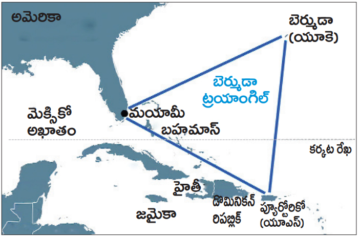 సినిమా భాషల్లో చెప్పాలంటే, ఇది ఉత్తర అట్లాంటిక్ మహా సముద్రంలో ఉండే ఒక ‘మాయా బజార్’ లాంటి ప్రదేశం. ఫ్లోరిడాలోని మయామీ, బ్రిటన్లోని బెర్ముడా దీవి, ప్యూయెర్టోరికోలోని సాన్జువాన్.. ఈ మూడు పాయింట్లను కలిపితే ప్రత్యక్షమయ్యే పెద్ద ‘ముక్కోణపు సుడిగుండమే’ బెర్ముడా ట్రయాంగిల్.