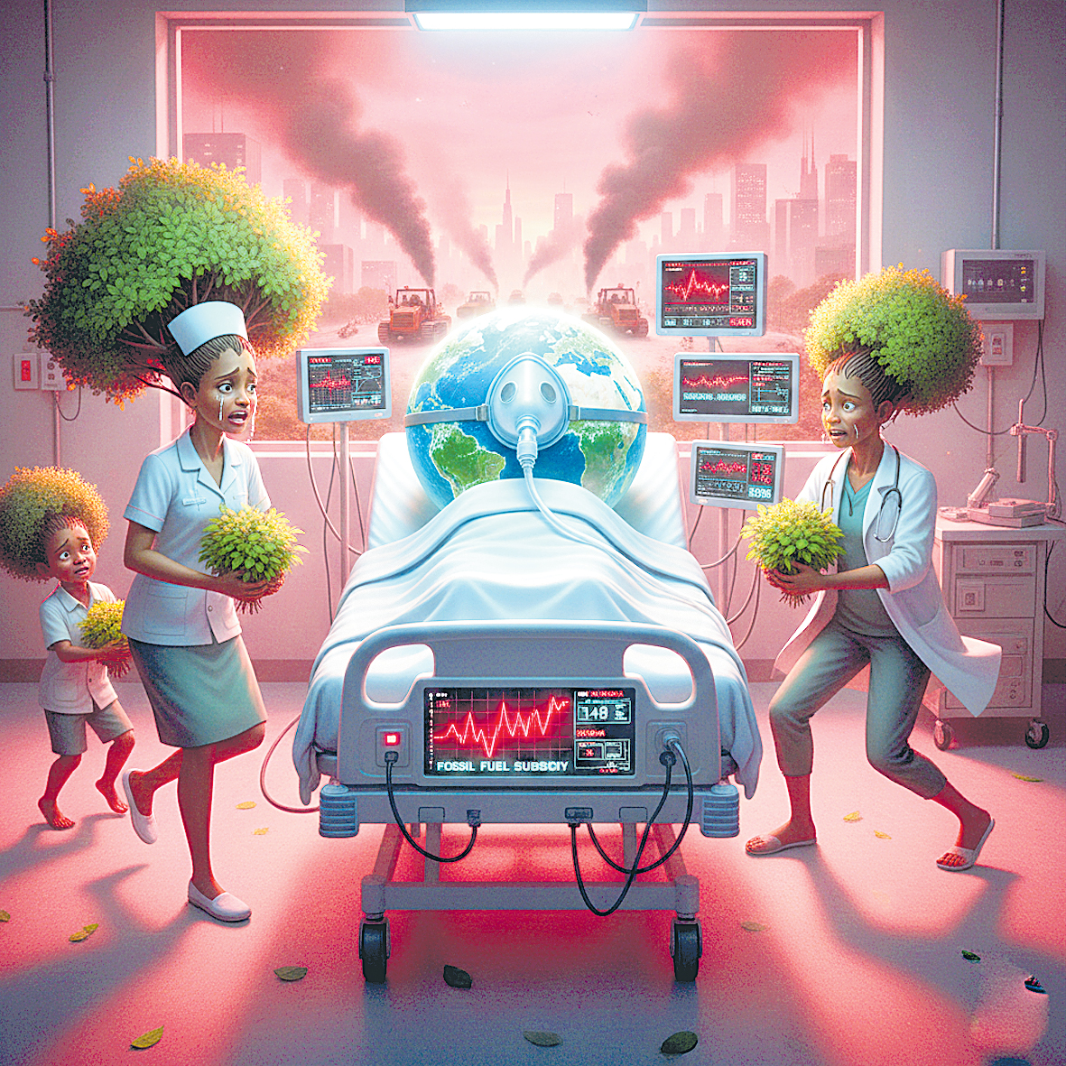 అంటే భారీ పరిశ్రమలు, పొగలు కక్కే కర్మాగారాలు, అడవుల నరికివేత, బొగ్గు, చమురు తవ్వకాలు అన్నీ కలిసి భూమిపై ఒక మహా విధ్వంస యజ్ఞం చేస్తున్నాయి. మరి ప్రకృతిని కాపాడటానికి ఎంత పెట్టారు? అంటే కేవలం 220 బిలియన్ అంటే (పద్దెనిమి లక్షల కోట్ల రూపాయలు) మాత్రమే! అంటే ఒకవైపు అడవులకు నీళ్లు పోసినట్టు నటిస్తూ, మరోవైపు వాటిని అగ్గిపెట్టెలతో కాల్చేస్తున్నారని ఇది స్పష్టం చేసింది. ఇదే విషయాన్ని సరదాగా చెప్పాలంటే మనం ప్రకృతికి ప్రేమగా ఒక గ్లాసు నీళ్లు పోస్తే, వెంటనే దానిమీద ముప్పై బకెట్ల విషం కుమ్మరిస్తున్నాం!