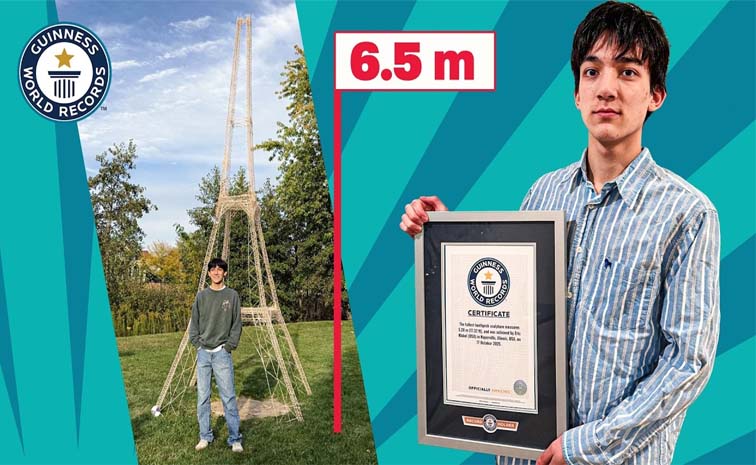 యునైటెడ్ స్టేట్స్లోని ఇల్లినాయిస్లోని నేపర్విల్లేకు చెందిన ఎరిక్ కేబుల్ అనే యువకుడు ఇంజనీరింగ్ పట్ల తనకున్న ప్రేమను రికార్డు క్రియేట్ చేసే విజయంగా మార్చుకున్నాడు. నెలల తరబడి టూత్పిక్లు జిగురు మాత్రమే ఉపయోగించి 17 అడుగుల ఎత్తైన టవర్ని నిర్మించాడు. ఈ నిర్మాణం ఎత్తు 5.28 మీటర్లు. ఇది పూర్తిగా టూత్పిక్తో నిర్మించిన ఎత్తైన భవనంగా నిలిచి..గిన్నిస్ రికార్డులకెక్కింది.