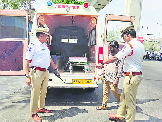 మంగళవారం తార్నాకలో అంబులెన్స్ను తనిఖీ చేస్తున్న ట్రాఫిక్ పోలీసులు