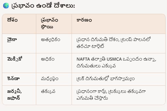 చైనా, మెక్సికో, కెనడా వంటి దేశాలపై ఈ లేటెస్ట్ టారిఫ్ ప్రభావం ఉండే అవకాశం ఉంది. ఈ టారిఫ్పై ఇంకా స్పష్టత రావాల్సి ఉంది. ఒకవేళ విడి భాగాలు, ఉపకరణాలు (components) దిగుమతులపై కూడా టారిఫ్లు ఉంటే, ఆటోమొబైల్ ఎక్స్పోర్ట్-ఆధారిత వ్యాపారాలపై ప్రభావం ఉండొచ్చు. భారత్ నుంచి అమెరికాకు ఈ తరహా ట్రక్కుల (Medium/Heavy-duty Trucks) దిగుమతులు చాలా తక్కువగా ఉంటాయి. కాబట్టి అంతగా ప్రభావం పడకపోవచ్చు. అయితే.. ఇక్కడి కంపెనీలు అమెరికా మార్కెట్లో ప్రవేశించాలనుకుంటే మాత్రం టారిఫ్ చిక్కులు ఎదురయ్యే అవకాశం ఉంటుంది.