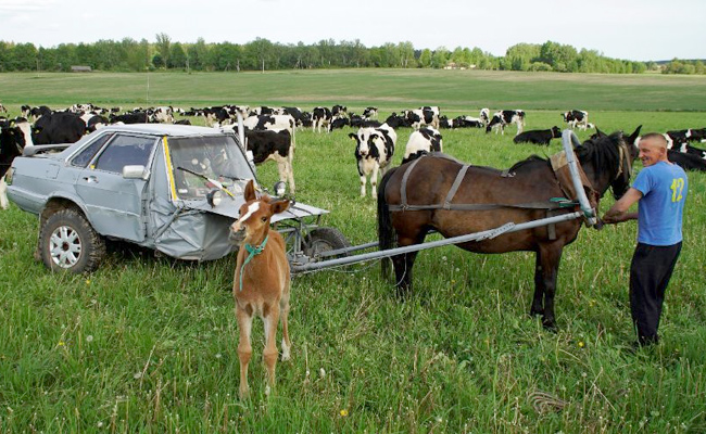 మినెస్క్: ఆడి కారులో తిరగాలన్న కోరికను ఓ పశువుల కాపరి వినూత్న ఆలోచనతో తీర్చుకున్నారు. జీవితంలో ఏనాటికైనా ఆడి కారు కొనాలని, అందులో తిరగాలనుకున్నది యూరప్లోని బెలారస్కు చెందిన అలెక్సీ చిరకాల వాంఛ. అయితే, ఆడి కారు కొనే స్థోమత లేకపోవడం, ఒకవేళ అప్పోసప్పో చేసి దానిని కొనుగోలు చేసినా గొర్రెలు, ఆవులకు కాపరిగా దాన్ని తీసుకుని వెళ్ళలేడు. దాంతో ఆయనకు ఓ వినూత్న ఆలోచన వచ్చింది. పనిచేయని ఓ ఆడి కారును కొనుగోలు చేసి, దాని ఇంజిన్ భాగాన్ని తొలగించి గుర్రపు బండిగా మార్చేశాడు అలెక్సీ. గుర్రం కారును లాగుతుంటే ఆయన ఎంచక్కా అందులో గొర్రెలు, ఆవులు కాసేందుకు వెళ్తున్నాడు. పెట్రోల్ ఖర్చు భారం కూడా లేదు. పశువుల కాపరిగా పనులు చేసుకోవడంతోపాటు, ఆడి కారు కమ్ గుర్రపు బక్కీలో ఆయన షికార్లకు సైతం వెళుతూ మురిసిపోతున్నాడు. అలెక్సీ ఆడికారుకు సంబంధించిన ఫోటోలు సోషల్ మీడియాలో వైరల్ అవుతున్నాయి.