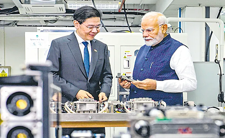 సింగపూర్లో ప్రఖ్యాతిగాంచిన సెమీ కండక్టర్, ఎలక్ట్రానిక్స్ తయారీ కంపెనీ ఏఈఎం హోల్డింగ్స్ లిమిటెడ్ను నరేంద్ర మోదీ, లారెన్స్ వాంగ్ కలిసి సందర్శించారు. భారత్–సింగపూర్ మధ్య సంబంధాల్లో సెమీ కండక్టర్లు, టెక్నాలజీకి అత్యధిక ప్రాధాన్యం ఉందని మోదీ ఈ సందర్భంగా పేర్కొన్నారు.
