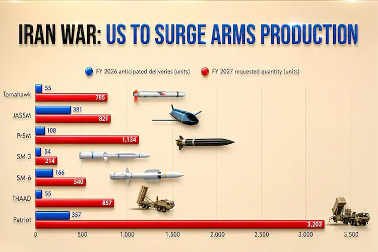 ఇరాన్, అమెరికా-ఇజ్రాయెల్ యుద్ధంలో ఇప్పటికే ట్విస్టుల మీద ట్విస్టులు చోటుచేసుకుంటున్నాయి. పాకిస్తాన్ వేదిక చర్చల్లో కూడా సందిగ్ధత నెలకొంది. సీజ్ఫైర్ను ట్రంప్ పొడిగించినప్పటికీ అరకొరదాడులు కొనసాగుతూనే ఉన్నాయి. ఇక, ఇరాన్ సైతం ఎప్పటికప్పుడు హెచ్చరికలు జారీ చేస్తూనే ఉంది. మరోవైపు.. ఇరాన్పై దాడుల కారణంగా అమెరికా ఆయుధాల సంఖ్య రోజురోజుకి తరిగిపోతోంది. ఈ నేపథ్యంలో 2027 బడ్జెట్లో అమెరికా భారీగా కొత్త మిసైళ్లను ఆర్డర్ చేసింది. ఇంతకీ అమెరికా వద్ద ఇంకా ఎన్ని క్షిపణులు, ఆయుధాలు ఉన్నాయనే అంశం ఓ నివేదిక బయటకు వచ్చింది.