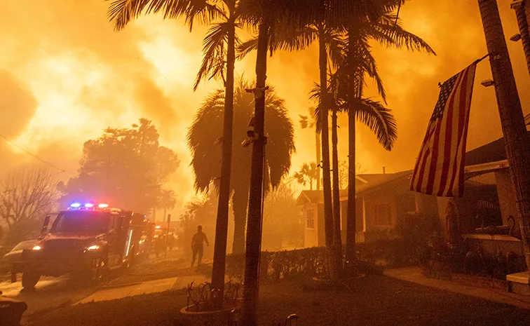 లాస్ ఏంజిల్స్: అమెరికాలోని లాస్ ఏంజిల్స్, కాలిఫోర్నియాలలోని అడవుల్లో కార్చిచ్చు చల్లారడంలేదు. ఈ కార్చిచ్చుకు ప్రభావితమైన పదివేల మందిలో నటులు, సంగీతకారులు, ఇతర ప్రముఖులు ఉన్నారు. ఈ ప్రమాదంలో ఐదుగురు మృతిచెందారు. పాలిసాడ్స్, ఈటన్ తదితర ప్రాంతాల్లో గాలి వేగం చాలా ఎక్కువగా ఉండటంతో అటవీ మంటలు అదుపులోనికి రావడంలేదు. గడచిన 24 గంటల్లో లాస్ ఏంజిల్స్, కాలిఫోర్నియాలోని గ్రేటర్ లాస్ ఏంజిల్స్ ప్రాంతాల నుండి 70 వేల మందికి పైగా ప్రజలను సురక్షిత ప్రాంతాలకు తరలించారు.
