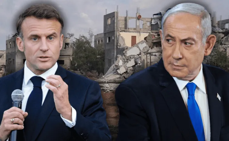 అయితే మాక్రాన్ నిర్ణయాన్ని నెతన్యాహు ఖండించారు. ఫాన్స్ అధ్యక్షుడి నిర్ణయాన్ని తాము అవమానకరంగా భావిస్తున్నట్లు ఓ వీడియోని విడుదల చేశారు. ఇరాన్ నేతృత్వంలోని అనాగరిక శక్తులతో ఇజ్రాయెల్ పోరాడుతున్నప్పుడు, నాగరిక దేశాలన్నీ ఇజ్రాయెల్ వైపు నిలబడాలి’ అని నెతన్యాహు కోరారు. అయినా మాక్రాన్, ఇతర పాశ్చాత్య నాయకులు ఇప్పుడు ఇజ్రాయెల్పై ఆయుధాల ఆంక్షలు విధించాలని పిలుపునివ్వడం సిగ్గుచేటుగా అభివర్ణించారు.