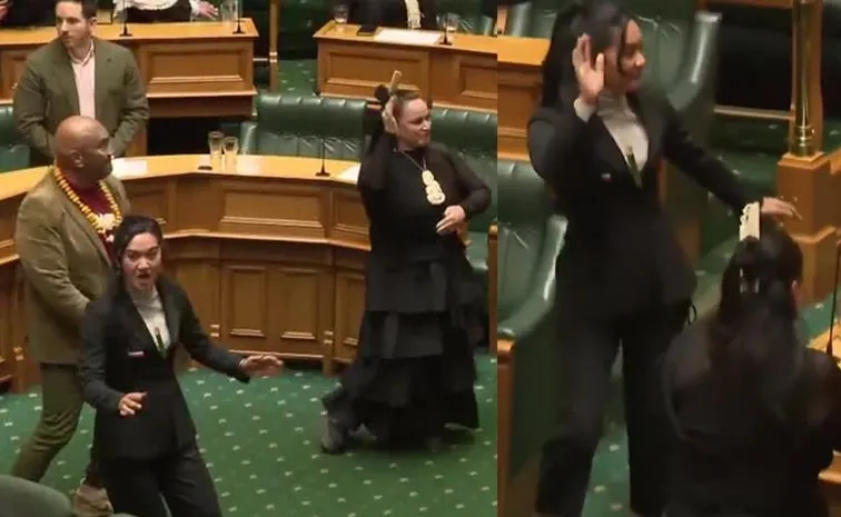 న్యూజిలాండ్లో అత్యంత పిన్న వయస్కురాలైన ఎంపీగా హన-రాహితి రికార్డు సృష్టించిన విషయం తెలిసిందే. ఈ క్రమంలో పార్లమెంట్లో ఆమె అడుగుపెట్టిన తర్వాత.. తమ కమ్యూనిటీ(మావోరి కమ్యూనిటీ)పై వివక్షను ప్రశ్నిస్తూ ఎంపీ హన-రాహితి పార్లమెంటులో చేసిన ప్రసంగం సంచలనం రేపింది. గిరిజన సంప్రదాయ పద్దతిలో హక చేస్తూ నిరసన వ్యక్తం చేశారు. ఇక, తాజాగా మరోసారి హన-రాహితి ఇలా నిరసన తెలిపారు.