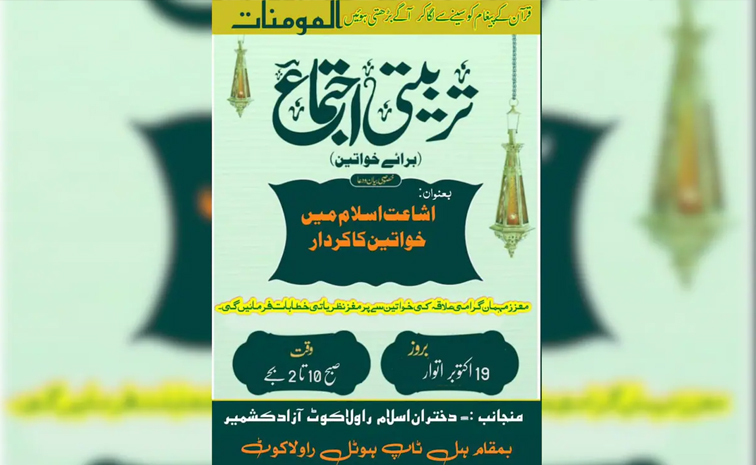 జైష్ అధినేత మసూద్ అజార్ సోదరి సాదియా అజార్ నేతృత్వంలోని 'జమాత్ ఉల్ మోమినాత్' అనే మహిళా బృందాన్ని ఏర్పాటు చేశారు. ఈ కోర్సులో భాగంగా, జైష్ నాయకుల కుటుంబ సభ్యులు, వ్యవస్థాపకుడు మసూద్ అజార్, అతని కమాండర్ల బంధువులు, జిహాద్, ఇస్లాంకు సంబంధించి వారి 'విధుల' గురించి బోధిస్తారు. ఆన్లైన్లో నిర్వహించే నియామక డ్రైవ్ వచ్చే నెల నవంబర్ 8 నుండి ప్రారంభం కానుంది. ఈ 'ఉపన్యాసాలు' రోజుకు 40 నిమిషాలు ఉంటాయి. అజార్ ఇద్దరు సోదరీమణులు, సాదియా అజార్, సమైరా అజార్ నాయకత్వం వహిస్తారు. ఇందులో జమాత్ ఉల్-ముమినాత్లో చేరేలా మహిళల్ని పోత్సహిస్తాయి. గత నెలలో బహవల్పూర్లోని మర్కజ్ ఉస్మాన్ ఓ అలీలో తన చివరి బహిరంగ ప్రసంగం తర్వాత, ఈ వార్త వెలుగులోకి వచ్చింది. ఈ 'కోర్సు'లో చేరే ప్రతి మహిళ నుండి రూ. 156 వసూలు చేసి, వారిని ఆన్లైన్ సమాచార ఫారం నింపమని బలవంతం చేస్తోందట. దీంతోపాటు అజార్ తన 'విరాళాల' కార్యక్రమాన్ని ముమ్మరం చేస్తున్నట్టు తెలుస్తోంది.