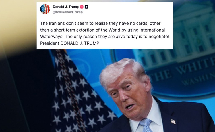 మేం కొత్త మార్పు దిశగా ముందుకెళ్తున్నాం. మా నౌకల్ని అత్యుత్తమ ఆయుధాలతో లోడ్ చేస్తున్నాం. గతంలో ఉపయోగించిన వాటికంటే ఇవి శక్తివంతమైనవి. అంతర్జాతీయ జలమార్గాలని ఉపయోగించి ప్రపంచాన్ని కొన్నిరోజులు దోపిడి చేయడం తప్ప ఇరాన్ నేతలకు మరో దారి లేదు. కేవలం చర్చలు జరపడానికి మాత్రమే వాళ్లు బతికున్నారు అని ట్రంప్ వరస పోస్టులు పెట్టారు.