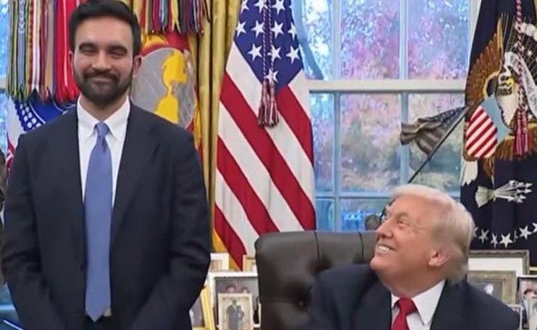 అంతకు ముందు.. న్యూయార్క్ సిటీకి కొత్తగా ఎన్నికైన మేయర్ జోహ్రాన్ మమ్దానీని అధ్యక్షుడు ట్రంప్ స్వయంగా లోనికి ఆహ్వానించారు. షేక్ హ్యాండ్ ఇచ్చి భుజం తట్టి విజయానికి గానూ ప్రశసించారు. ఆ సమయంలో ఓవెల్ ఆఫీస్ బయట ఉన్న కొందరు కేకలు వేస్తూ కోలాహలం చేశారు.