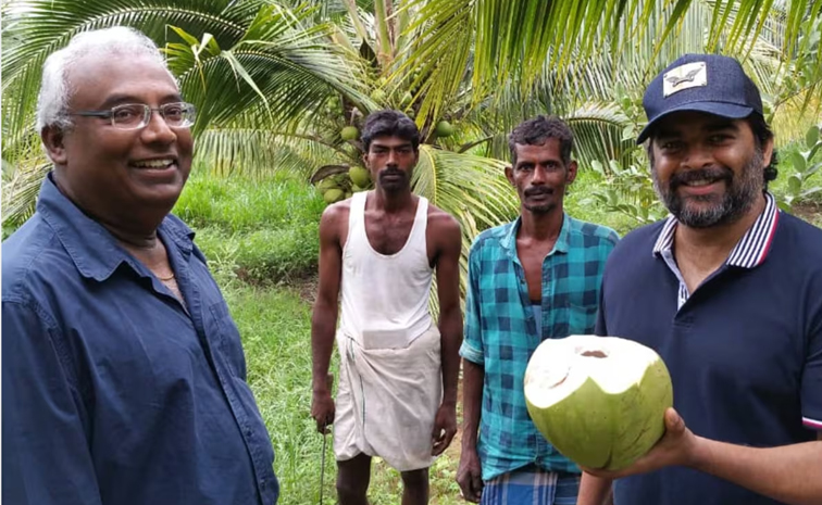 'ధురంధర్' చిత్రంలో బలమైన పాత్రతో వెండితెరపై బహుముఖ నటనతో మెప్పించి ప్రశంసలు పొందిన నటుడు ఆర్. మాధవన్.. 2019 సమయంలో తమిళనాడులోని పళనిలో తన సోదరుడు శుభయోగ్యన్తో కలిసి కొబ్బరి సాగు ప్రారంభించారు. నిరూపయోగంగా ఉన్న బీడు భూమిని కౌలుకు తీసుకుని, కేవలం మూడేళ్లలోనే విజయవంతంగా ఫలవంతమైన కొబ్బరి తోటగా మార్చారు. ఈ ఏడాది కొబ్బరికాయల దిగుబడి మరింత పెరగడంతో ఆదాయం కూడా వస్తుంది. ఆయన నిరంతర కృషితో బీడు భూమి ఇప్పుడు కొబ్బరి చెట్లతో ఫలవంతమైన తోటగా రూపాంతరం చెందింది.