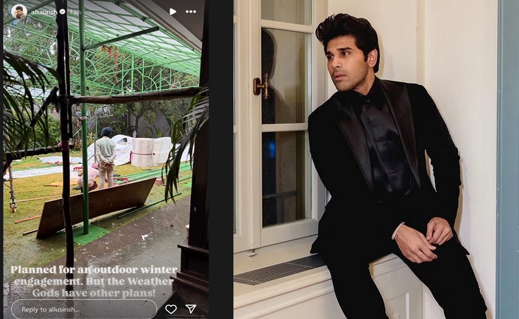 కానీ తుపాను ప్రభావం వల్ల వాతావరణంలో సడన్గా మార్పులొచ్చాయి. అకస్మాత్తుగా వర్షాలు పడుతున్నాయి. శిరీష్ నిశ్చితార్థపు పనులకు సైతం ఈ వర్షాలు ఆటంకంగా మారాయి. ఈ మేరకు ఓ ఫోటోను షేర్ చేసిన శిరీష్.. బయట ఎంగేజ్మెంట్ చేసుకుందామని ప్లాన్ చేశాం. కానీ, వాతావరణం.. దేవుడి ప్లాన్స్ మరోలా ఉన్నాయి అని రాసుకొచ్చాడు. అందులో నిశ్చితార్థపు వేదిక తడిసిముద్దయినట్లు కనిపిస్తోంది.