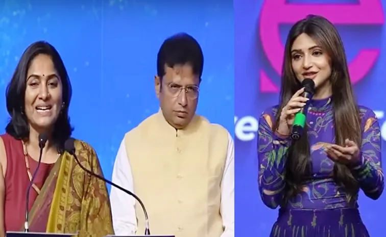 మంత్రివర్యులు క్షమించాలి అంటూనే హీరోయిన్ శ్రీలీల (Actress Sreeleela)ను స్టేజీపైకి పిలిచింది. 'షి ఈజ్ ది హీరో ఆల్వేస్' అనే యాప్ లాంఛ్ చేస్తున్నాం. కాబట్టి.. బోల్డ్ అండ్ బ్యూటిఫుల్ ఎంటర్ప్రెన్యూర్ శ్రీలీలను స్టేజీపైకి ఆహ్వానిస్తున్నాం అంటూ తన ఇంట్రో ముగించింది. అలా శ్రీలీల.. స్టేజీ ఎక్కగా మంత్రి ఏమాత్రం చిరాకుపడకుండా ఆమెను నవ్వుతూ పలకరించాడు. తర్వాత తన ప్రసంగాన్ని తిరిగి కొనసాగించాడు.