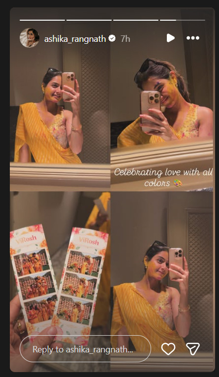 ఇకపోతే బుధవారం సాయంత్రం హల్దీ సెలబ్రేషన్స్ జరగ్గా.. వేడుకకు వచ్చిన అతిధులు అందరూ పాల్గొన్నారు. ఈ కార్యక్రమానికి టాలీవుడ్ హీరోయిన్ ఆషికా రంగనాథ్ కూడా వెళ్లింది. హల్దీకి సంబంధించిన ఫొటోలని తన ఇన్ స్టాలో పోస్ట్ చేసింది. ఇది హల్దీ కాదని ముందే హోలీ వచ్చేసిందని చెప్పుకొచ్చింది. ఇదే పెళ్లి కోసం హీరోయిన్ కల్యాణి ప్రియదర్శన్ కూడా అక్కడికి వెళ్లినట్లు తెలుస్తోంది. ఇన్ స్టాలో పెట్టిన ఓ ఫొటో చూస్తే.. ఈమె కూడా హల్దీ వేడుకల్లో పాల్గొన్నట్లు కనిపిస్తోంది.