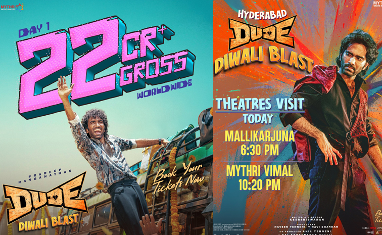The DUDE DIWALI BLAST takes off on a BLOCKBUSTER note at the box office 🎇#Dude collects a gross of 22 CRORES WORLDWIDE on Day 1 ❤🔥