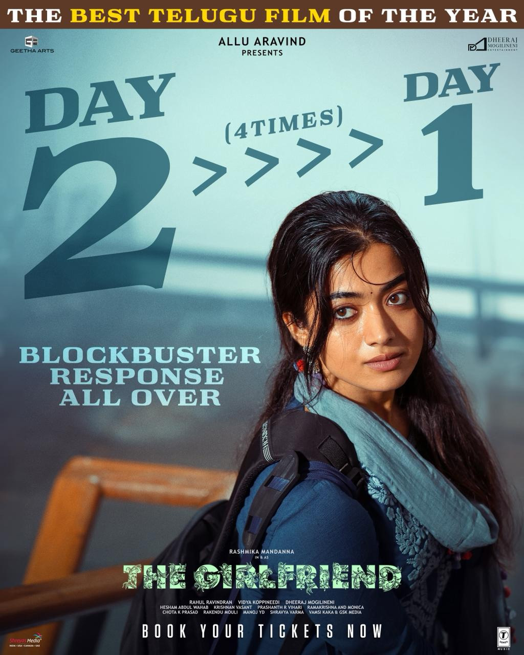 రష్మిక 'ద గర్ల్ఫ్రెండ్' విషయానికొస్తే.. విడుదలకు ముందురోజే ప్రీమియర్స్ వేశారు. మంచి రెస్పాన్స్ వచ్చింది. దీంతో తొలిరోజు వసూళ్లు నెమ్మదిగా ప్రారంభమయ్యాయి. అలా దేశవ్యాప్తంగా తొలిరోజు రూ.1.30 కోట్ల నెట్ వసూళ్లు వచ్చాయని తెలుస్తోంది. చిత్రబృందం మాత్రం తొలిరోజు కంటే రెండో రోజు వచ్చేసరికి నాలుగురెట్ల వసూళ్ల పెరిగినట్లు చెప్పుకొచ్చారు. ప్రస్తుతానికైతే అధికారికంగా పోస్టర్ రిలీజ్ చేయలేదు. బహుశా వీకెండ్ తర్వాత చేస్తారేమో చూడాలి.