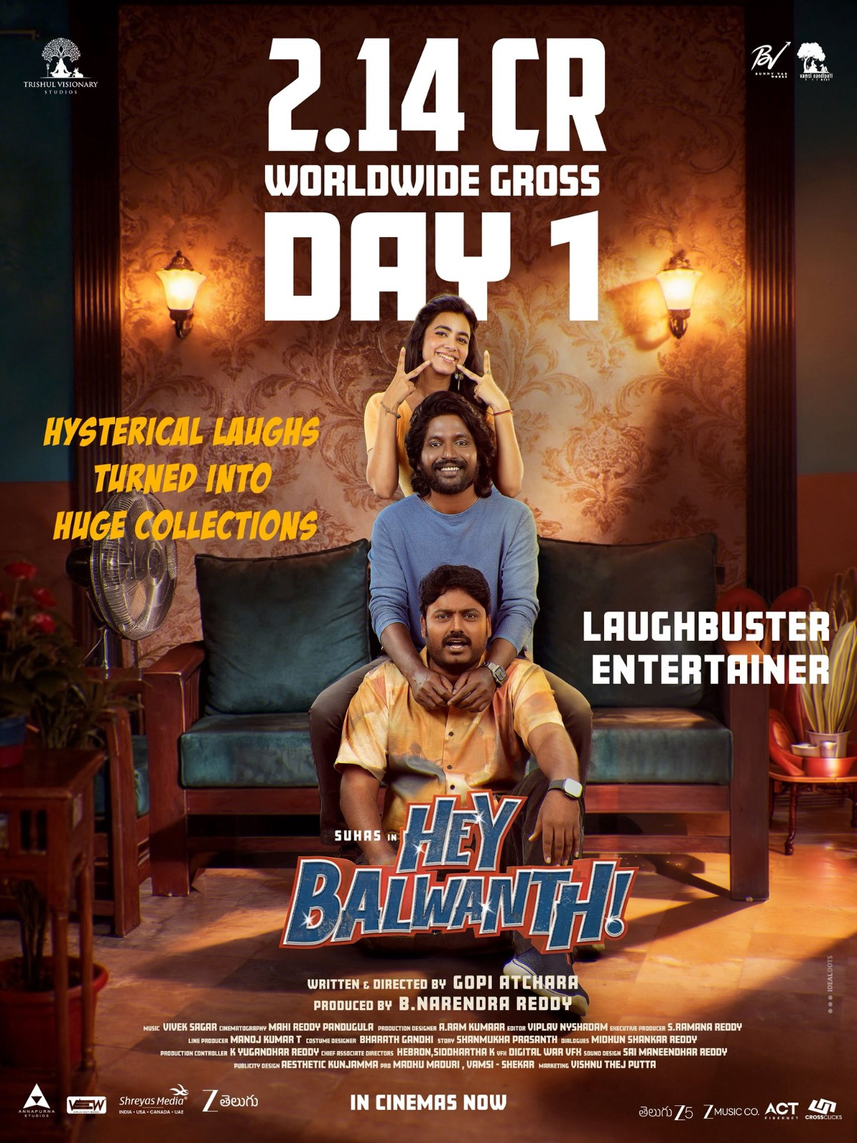 ఈ వీకెండ్ థియేటర్లలోకి పలు తెలుగు సినిమాలు, డబ్బింగ్ చిత్రాలు వచ్చినప్పటికీ సుహాస్ హీరోగా చేసిన 'హే బలవంత్' పాజిటివ్ టాక్ తెచ్చుకుంది. కలెక్షన్స్ కూడా బాగానే వచ్చాయి. ఈ మేరకు నిర్మాతలు అధికారిక నంబర్స్ వదిలారు. ఎన్ని కోట్లు వచ్చాయనేది పోస్టర్ రూపంలో విడుదల చేశారు. ఇంతకీ ఈ సినిమా సంగతేంటి?