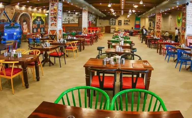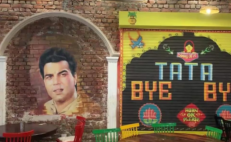 ఈ రెస్టారెంట్ మొత్తం బాలీవుడ్ థీమ్తో అలంకరించి ఉంటుంది. ధర్మేంద్ర క్లాసిక్ చిత్రాల పోస్టర్లు, అద్భుతమైన డైలాగ్స్ గోడలపై కనిపిస్తాయి.