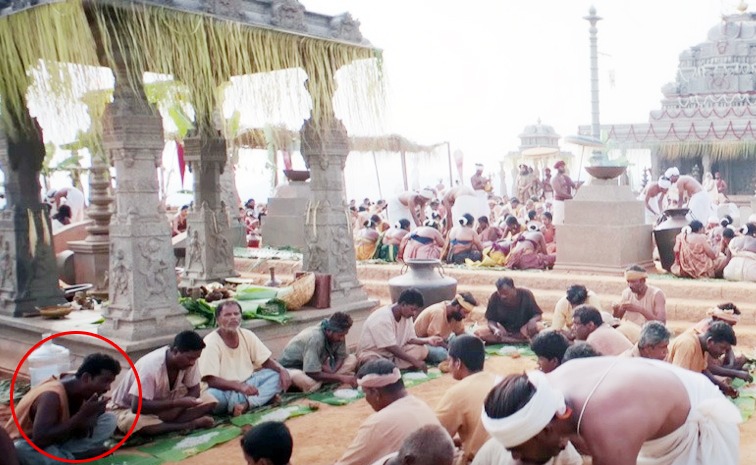 సెకండాఫ్లో 'బ్రహ్మకలశ' అనే పాట ఉంటుంది. గూడెంలో ఉండే దేవుడిని రాజు ఉండే చోటుకి తీసుకొచ్చే సందర్భంలో ఈ సాంగ్ వస్తుంది. ఈ పాటలో కాంతార అలియాస్ రిషభ్ శెట్టి తమ దేవుడిని తలపై పెట్టుకుని తీసుకురావడం, తర్వాత స్నానమాచరించి పూజలు చేయడం.. ఇలా అంతా చూపించారు. అయితే అందరూ కలిసి కింద కూర్చుని భోజన చేస్తున్న సన్నివేశంలో మాత్రం ఓ చోట 20 లీటర్ల ప్లాస్టిక్ క్యాన్ కనిపించింది. షూటింగ్ చేస్తున్నప్పుడు దీన్ని అక్కడి నుంచి తీయడం మర్చిపోయినట్లున్నారు. అది ఇప్పుడు మూవీలో, రెండు రోజుల క్రితం రిలీజ్ చేసిన వీడియో సాంగ్లో కనిపించింది.