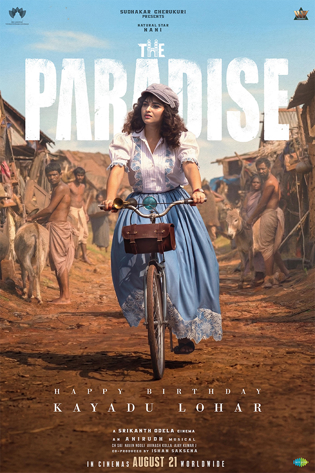దసరా లాంటి బ్లాక్ బస్టర్ తర్వాత నాని, దర్శకుడు శ్రీకాంత్ ఓదెల కాంబినేషన్తో తెరకెక్కుతున్న తాజా చిత్రం ‘ది ప్యారడైజ్’. ఇప్పటికే ఈ చిత్రం నుంచి విడుదలైన నాని లుక్, ఆయా షేర్ పాట సోషల్లో దూసుకెళ్తున్నాయి. తాజాగా హీరోయిన్గా నటిస్తున్న కయాదు లోహర్ లుక్ని కూడా విడుదల చేశారు. కయాదు బర్త్ డే సందర్భంగా ఈ రోజు(ఏప్రిల్ 11) ఫస్ట్ లుక్ పోస్టర్ని రిలీజ్ చేస్తూ బర్త్డే విషెస్ తెలిపారు. ఇందులో ఆమె సుబ్బలక్ష్మి పాత్రలో కనిపించబోతున్నట్లు పోస్టర్ ద్వారా వెల్లడించారు.