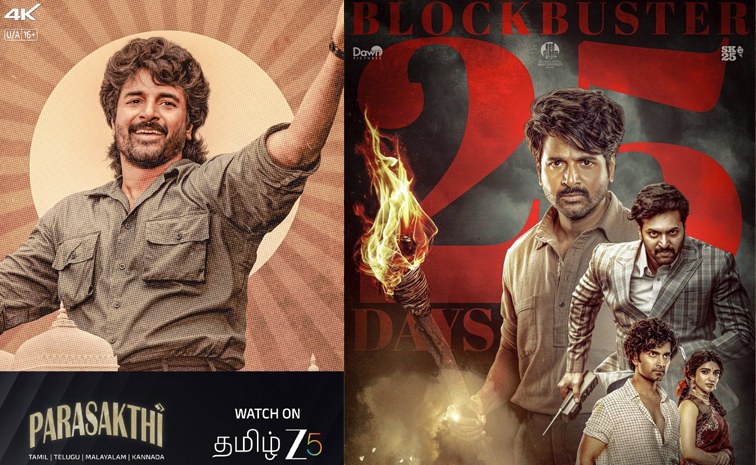 పరాశక్తి(Parasakthi) సినిమా జనవరి 7న జీ5(ZEE5) ఓటీటీలోకి రానుంది. తమిళ్తో పాటు తెలుగు, మలయాళం, కన్నడ వర్షన్ కూడా విడుదల కానుంది. టాలీవుడ్లో శివకార్తికేయన్కు భారీ క్రేజ్ ఉండటంతో పరాశక్తి చిత్రాన్ని చూసేందుకు తెలుగు ఫ్యాన్స్ ఆసక్తి కనపరుస్తున్నారు. ఇదే సినిమాతో నటి శ్రీలీల హీరోయిన్గా కోలీవుడ్కు పరిచయం అయిన విషయం తెలిసిందే.