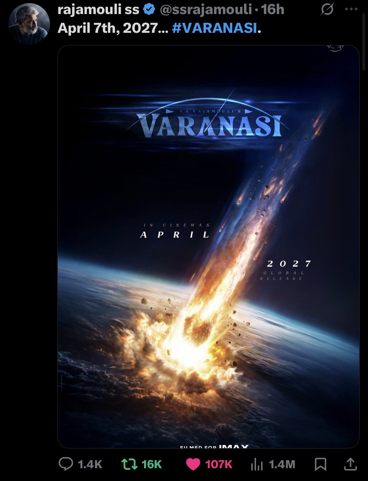 మూవీ ఎలా ఉండబోతుందనేది మూడు నిమిషాల వీడియో రూపంలో చూచాయిగా చెప్పేసిన దర్శకుడు రాజమౌళి.. అందరి అంచనాలు పెంచేశాడు. ఇదే ఈవెంట్లో సినిమా గురించి చాలానే విషయాలు బయటపెట్టాడు. చిత్రం పూర్తయ్యే వరకు ఒక్క లీక్ కూడా బయటకు రాకుండా కట్టుదిట్టం చేసే జక్కన్న.. ఇలా మారిపోవడం ఎవరూ ఊహించలేదు. ఇదే కార్యక్రమంలో కీరవాణి మాట్లాడుతూ 2027 వేసవిలో 'వారణాసి'.. థియేటర్లలోకి రావొచ్చని అన్నారు. ఇప్పుడు అదే నిజమైంది. వచ్చే ఏడాది ఉగాది కానుకగా ఏప్రిల్ 7న ఈ మూవీ ప్రపంచవ్యాప్తంగా రిలీజ్ కానుంది. ఈ మేరకు అధికారిక ప్రకటన చేశారు.