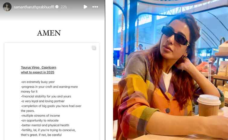 కాలం పరుగులు పెడుతూనే ఉంది. 2024 మొన్నే ప్రారంభమైందనుకులోపే ఈ ఏడాదికి వీడ్కోలు చెప్పే సమయం ఆసన్నమైంది. మరికొద్ది రోజుల్లోనే 2025 ప్రారంభం కానుంది. అయితే వచ్చే ఏడాది తన రాశికి ఎలా ఉంటుందో చెబుతూ సమంత ఇన్స్టాగ్రామ్ స్టోరీలో ఓ పోస్ట్ షేర్ చేసింది. వృషభం, కన్య, మకరం.. ఇలా మూడు రాశులవారి గురించి రాసుంది.