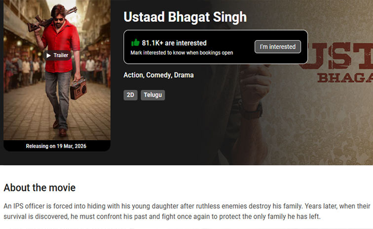 ‘ఉస్తాద్ భగత్సింగ్’ వారం ముందే ప్రేక్షకుల ముందుకు వస్తున్నారు. మొదటగా ఈ మూవీని ఈ నెల 26న థియేటర్లలో విడుదల చేస్తున్నట్లు ప్రకటించారు. టాక్సిక్ వాయిదా పడటంతో ఉగాది సందర్భంగా మార్చి 19న విడుదల చేస్తున్నట్లు ప్రకటించారు. అయితే, తాజాగా బుక్మైషోలో ఈ మూవీ స్టోరీకి సంబంధించి పాయింట్స్ను చేర్చి పవన్ కల్యాణ్ అభిమానులకు షాకిచ్చింది.