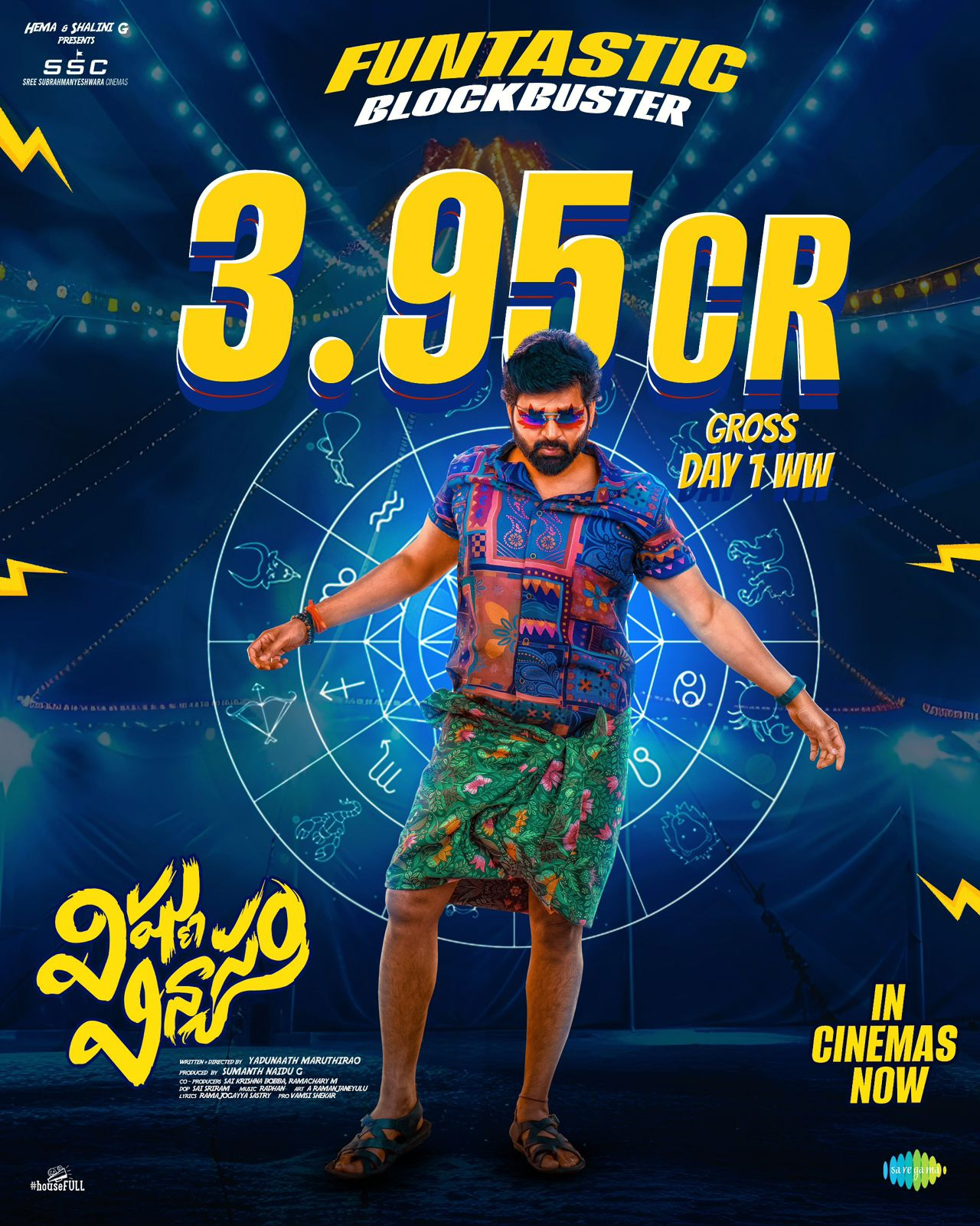 సామజవరగమన, సింగిల్ లాంటి కామెడీ సినిమాలతో ఆకట్టుకున్న హీరో శ్రీ విష్ణు నుంచి వచ్చిన లేటెస్ట్ సినిమా 'విష్ణు విన్యాసం'. పెద్దగా బజ్ లేకుండానే శుక్రవారం(ఫిబ్రవరి 27) థియేటర్లలోకి వచ్చింది. తొలి ఆట నుంచి దీనికి గొప్ప టాక్ అయితే రాలేదు. చూసినవాళ్లు కూడా పెదవి విరుస్తున్నారు. అయితేనేం తొలిరోజు కళ్లుచెదిరే కలెక్షన్స్ వచ్చినట్లు స్వయంగా నిర్మాతలే ప్రకటించారు. మొదటిరోజు వసూళ్ల పోస్టర్ రిలీజ్ చేశారు.