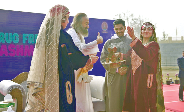 కాశ్మీర్ యువత ఎదుర్కొంటున్న అత్యవసర సవాళ్లలో ఒకటిగా మాదకద్రవ్యాల దుర్వినియోగం ఉద్భవిస్తున్న తరుణంలో, బక్షి స్టేడియంలో ఆశాజనక మరియు సంకల్పంతో కూడుకొన్న శక్తివంతమైన ప్రతి -ప్రవాహం రూపుదిద్దుకుంది. 50 కళాశాలలు మరియు నాలుగు విశ్వవిద్యాలయాల నుండి 20,000 మందికి పైగా విద్యార్థులు గురుదేవ్ సమక్షంలో ఎడ్యూ యూత్ సమావేశానికి సమావేశమయ్యారు. జమ్మూ కాశ్మీర్ ప్రభుత్వ ఉన్నత విద్యా శాఖ నిర్వహించిన ఈ కార్యక్రమంలో మాదకద్రవ్యాల రహిత కాశ్మీర్ను సృష్టిస్తామని ప్రతిజ్ఞ చేశారు.