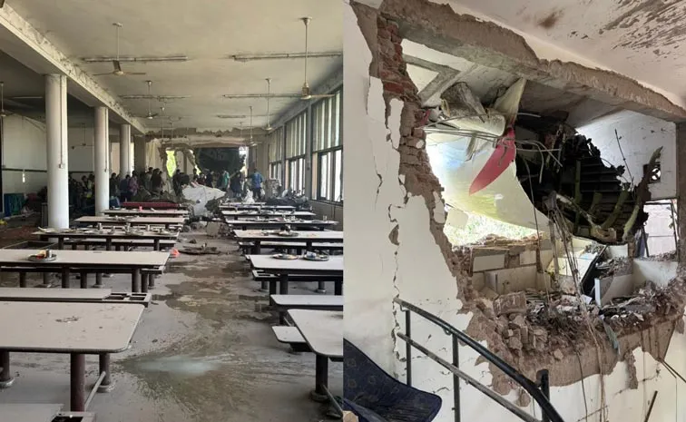 అహ్మదాబాద్లో ఎయిర్ ఇండియా విమానం కూలిన ప్రదేశంలో దృశ్యాలు ప్రమాద తీవ్రత ఎంతగా ఉందో చెప్పకనే చెప్పాయి. దుమ్ముతో నిండిపోయిన డైనింగ్ టేబుల్స్.. వాటిపై నిండుగా భోజనంతో పొందికగా ఉన్న ఆహారం పేట్లు.. పక్కనే మంచినీటి గ్లాసులు.. మసిబారిపోయిన క్యాంటీన్.. కొన్నిచోట్ల చిందరవందరగా పడిపోయిన సామగ్రి ఆ ఘోర ప్రమాదానికి సాక్ష్యంగా నిలిచాయి. ఆ హాస్టల్ భవనంలో రెసిడెంట్ వైద్యులు నివాసం ఉంటారు.