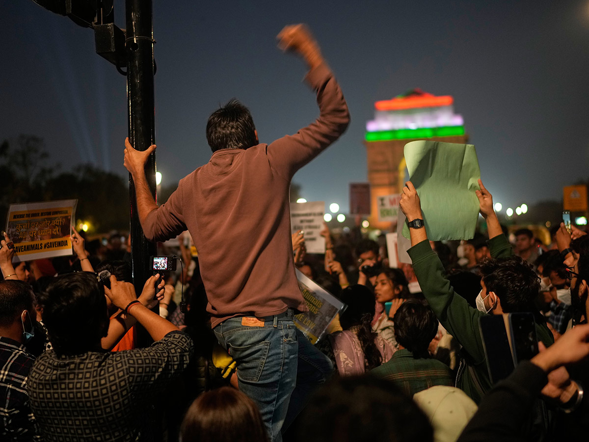 నిరసనలు తీవ్రతరం కావడంతో ఢిల్లీ పోలీసులు, పారామిలిటరీ దళాలు సంయుక్తంగా పలువురు నిరసనకారులను అదుపులోకి తీసుకున్నారు. పర్యావరణ కార్యకర్త విమ్లేందు ఝా ఈ అణిచివేతను ఖండించారు. 15 రోజులుగా లాక్డౌన్ లేదు, షట్డౌన్ లేదు కేవలం క్లౌడ్ సీడింగ్ లాంటి పనులు చేస్తున్నారు. ఇది దురదృష్టకరం’ అని ఆవేదన వ్యక్తం చేశారు. డీసీపీ మహలా మాట్లాడుతూ తాము భద్రతను కాపాడేందుకు కొంతమంది నిరసనకారులను అదుపులోకి తీసుకున్నామన్నారు.