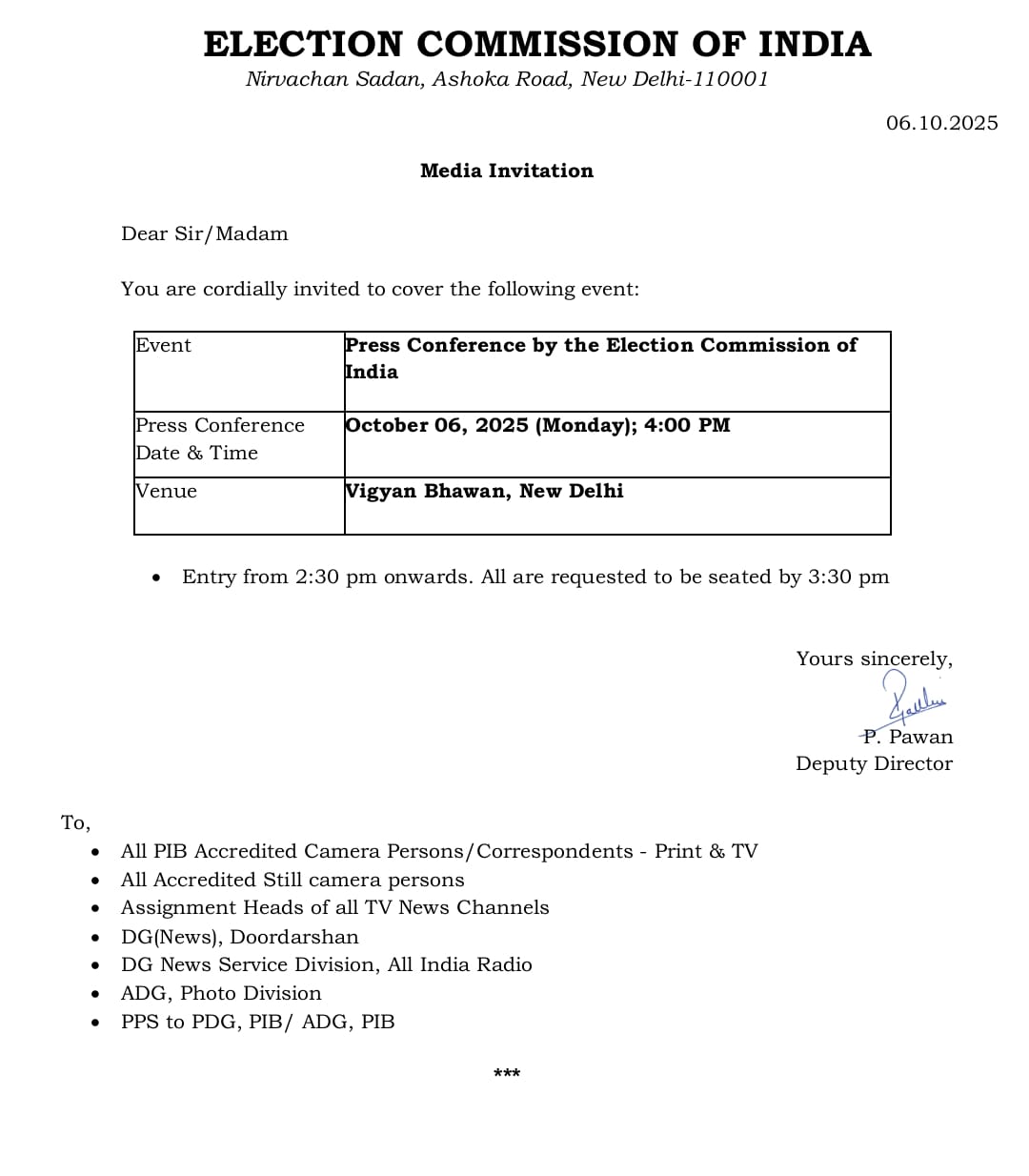 Delhi | Election Commission of India to hold a press conference at 4 PM today to announce the schedule for the upcoming Bihar Assembly Elections pic.twitter.com/YFTiaVTkk0