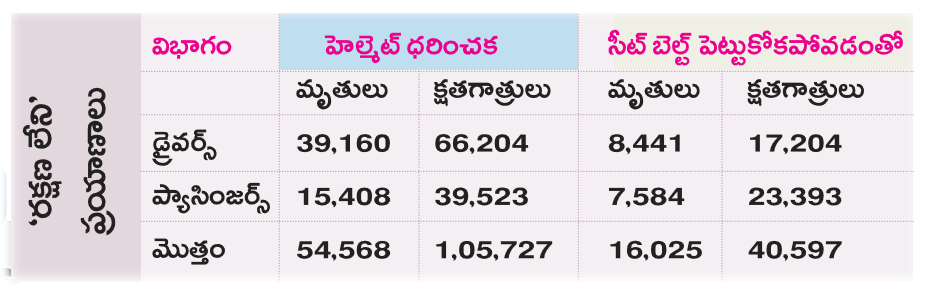 దాదాపు నిమిషానికో రోడ్డు ప్రమాదం.. మూడు నిమిషాలకు ఒక మరణం.. ఇదీ దేశవ్యాప్తంగా రోడ్డు ప్రమాద సంఘటనల తీరు. వాహనాల సంఖ్యకు తగ్గట్టుగా రోడ్డు ప్రమాదాలే కాదు.. క్షతగాత్రులు, మృతుల సంఖ్య సైతం ఏటా పెరుగుతూనే ఉన్నాయి.