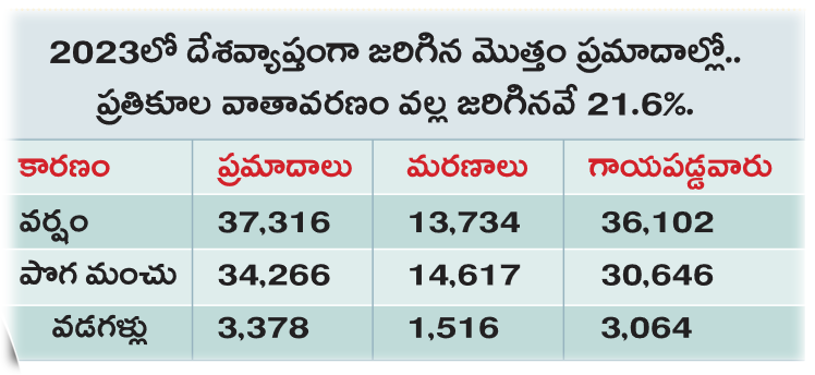 కేంద్ర రోడ్డు రవాణా, రహదారుల మంత్రిత్వ శాఖ విడుదల చేసిన తాజా నివేదిక ప్రకారం.. 2023లో దేశంలో 4,80,583 రోడ్డు ప్రమాదాలు సంభవించాయి. వీటిలో 1.73 లక్షల మంది మరణించగా.. 4.62 లక్షల మంది గాయపడ్డారు. ప్రమాదాల్లో సుమారు 22 శాతం వర్షం, పొగమంచు లాంటి ప్రతికూల వాతావరణంలో జరిగాయి. – సాక్షి, స్పెషల్ డెస్క్