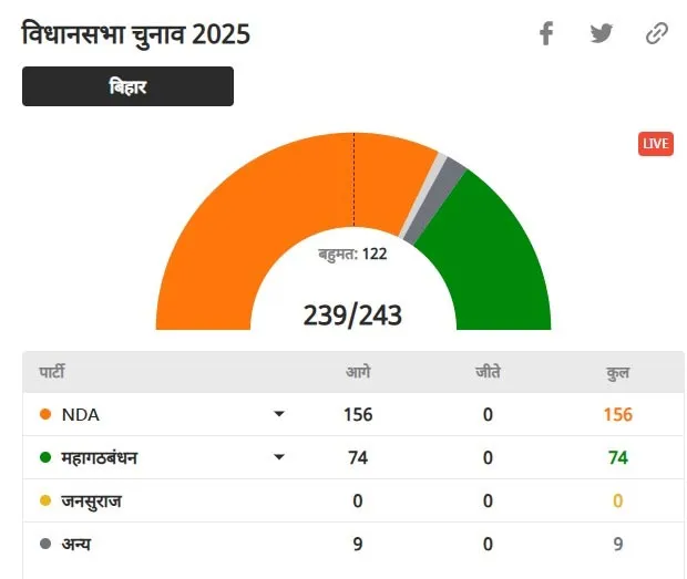 Bihar Elections Votes Counting Live: మ్యాజిక్ ఫిగర్ దాటేసిన ఎన్డీయే!