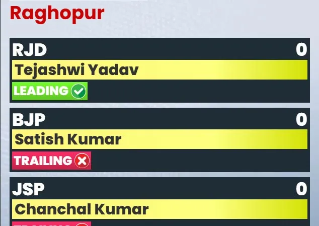 - రాఘోపుర్లో లాలూ మరో తనయుడు, ఆర్జేడీ నేత తేజస్వీ యాదవ్ ముందంజ