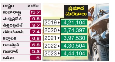 దేశంలో 2023లో జరిగిన ప్రమాదాల్లో 4.44 లక్షల మంది మరణించారు. ముఖ్యంగా రోడ్డు ప్రమాదాలు, రైల్వే ప్రమాదాలు, రైల్వే క్రాసింగ్ ప్రమాదాల